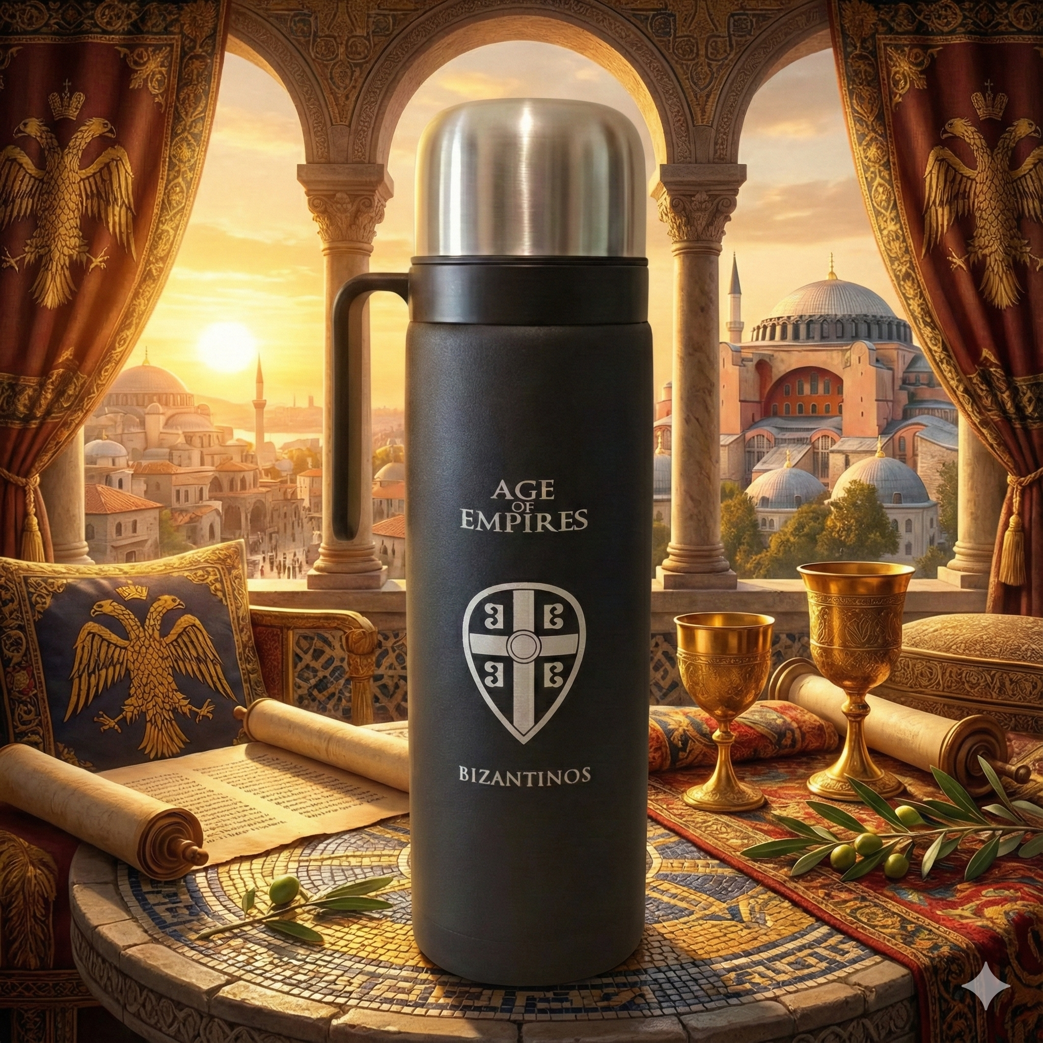 Termo de acero inoxidable de 1L grabado con el escudo de los Bizantinos.