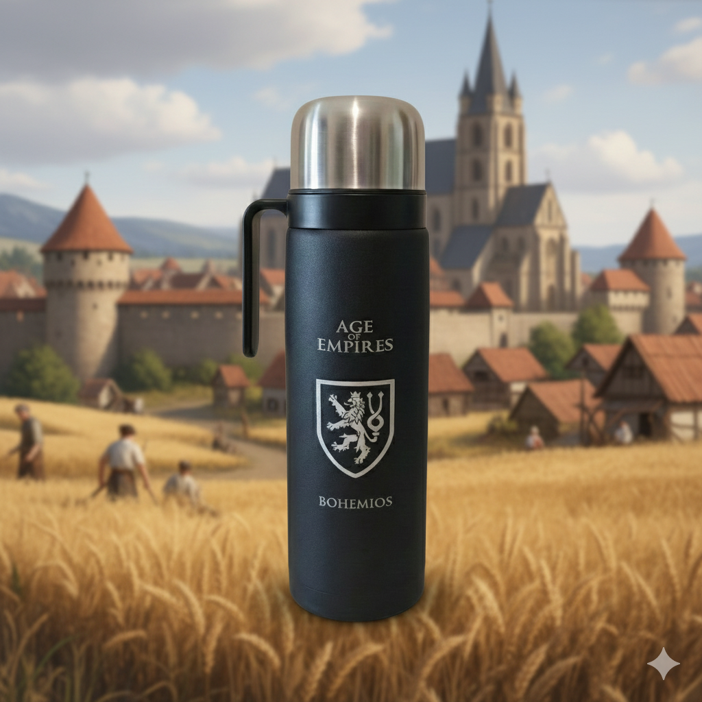 Termo de acero inoxidable de 1L grabado con el escudo de los Bohemios.