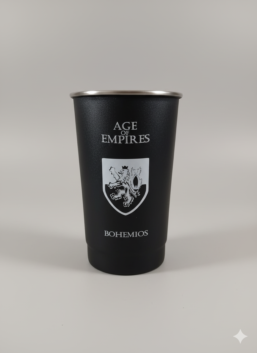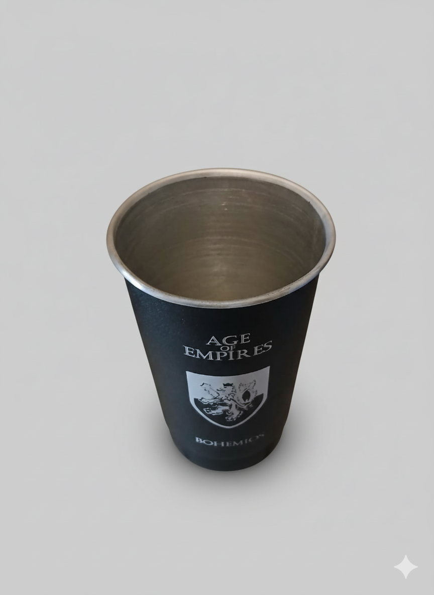Vaso fernetero grabado con el escudo de los Bohemios.