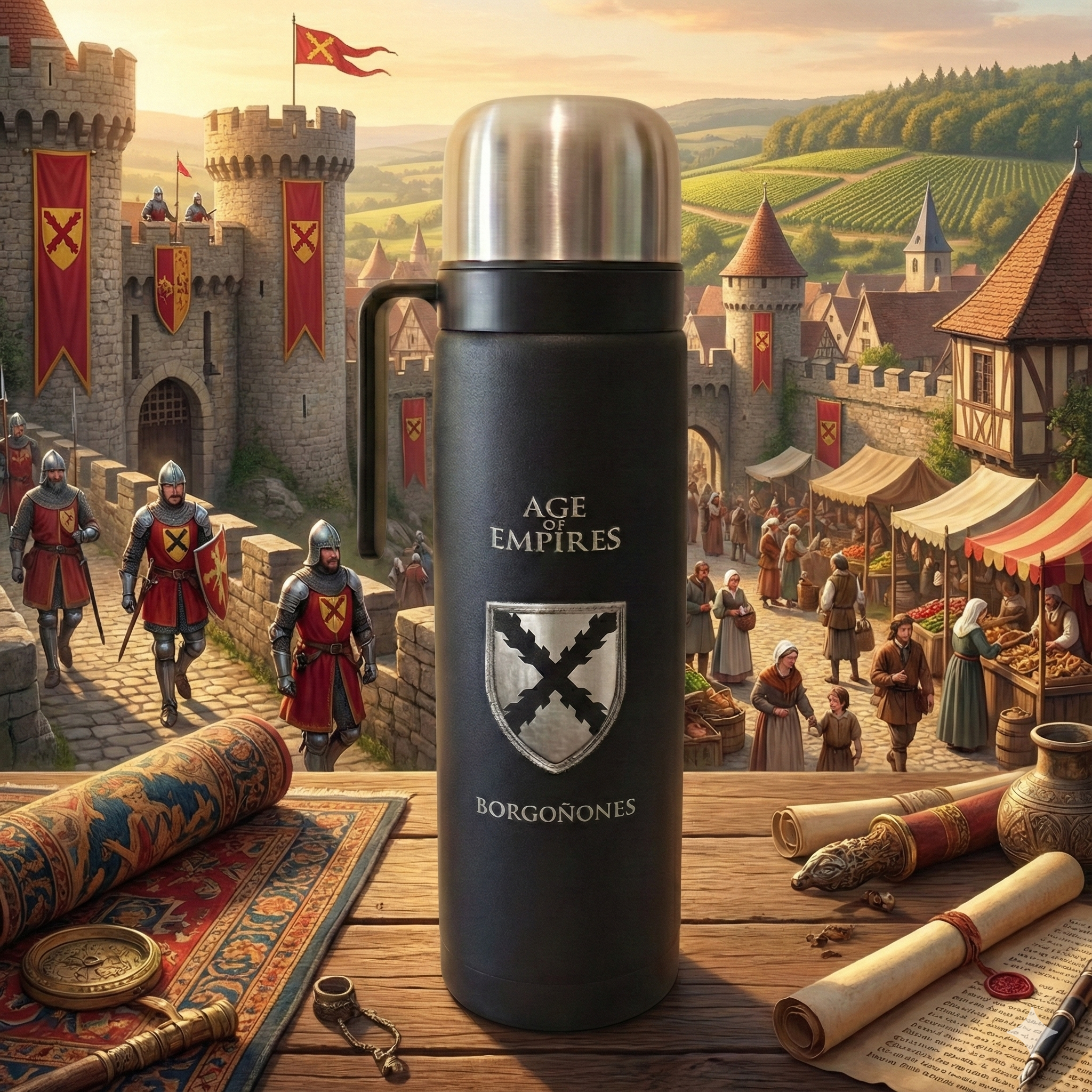 Termo de acero inoxidable de 1L grabado con el escudo de los Borgoñones.