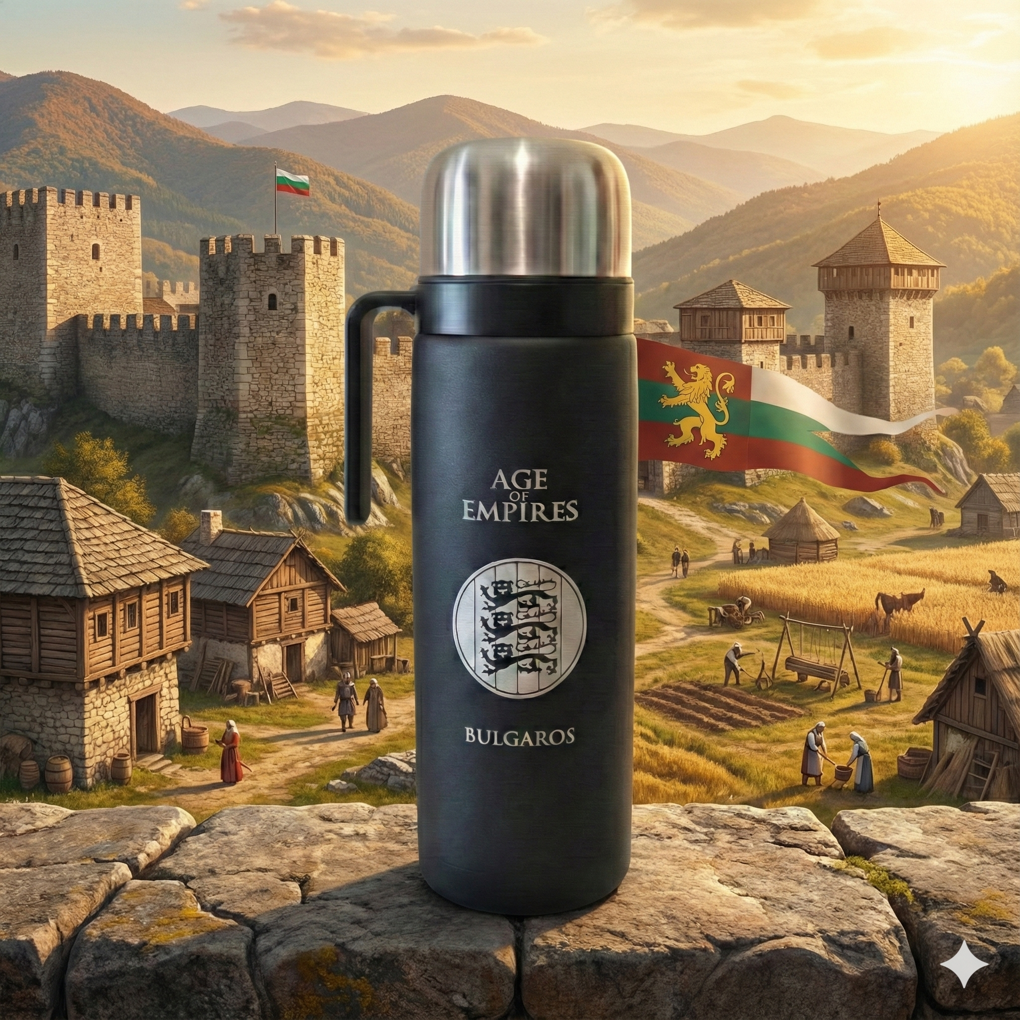 Termo de acero inoxidable de 1L grabado con el escudo de los Búlgaros.
