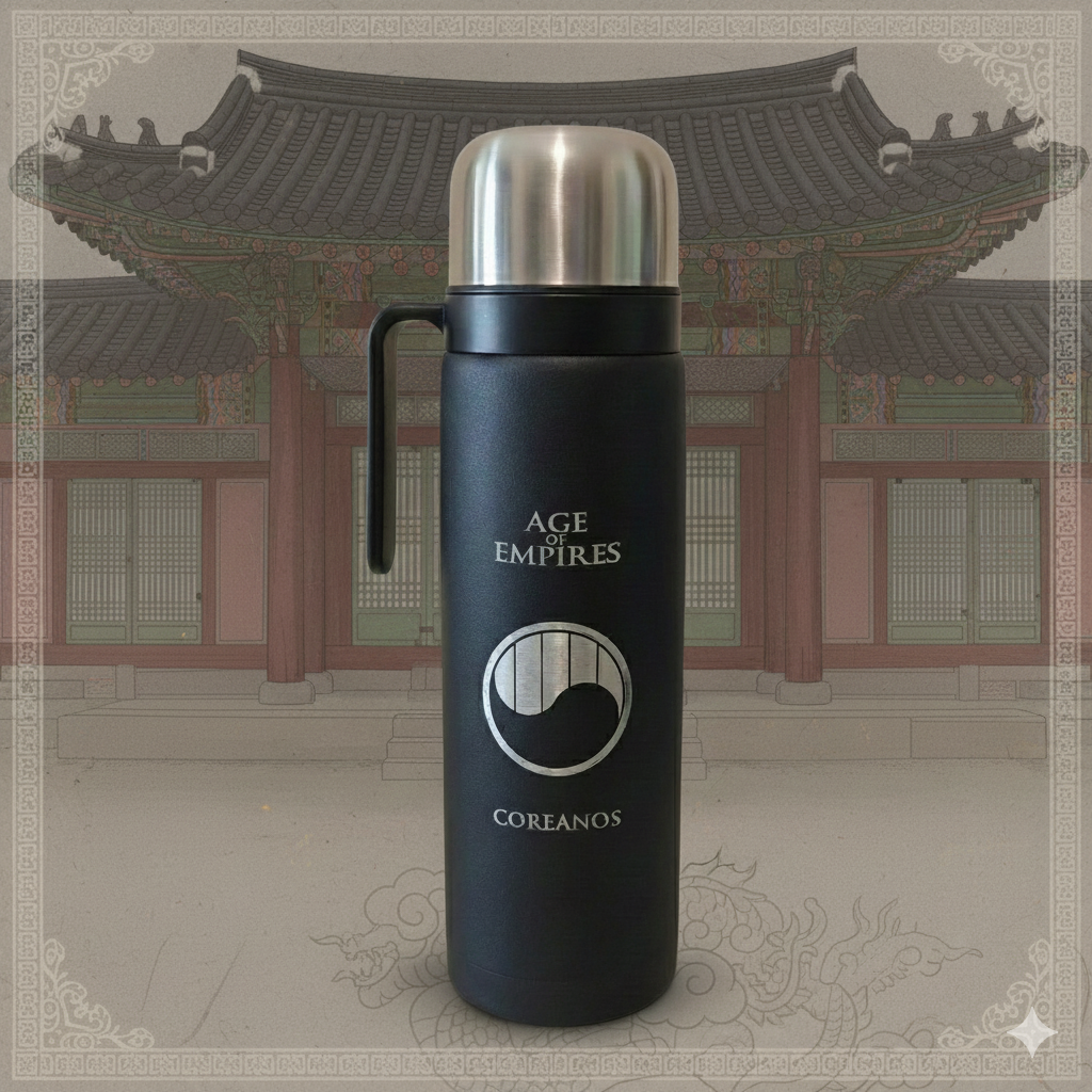 Termo de acero inoxidable de 1L grabado con el escudo de los Coreanos.