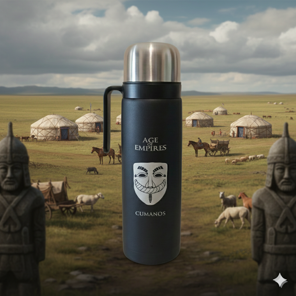 Termo de acero inoxidable de 1L grabado con el escudo de los Cumanos.