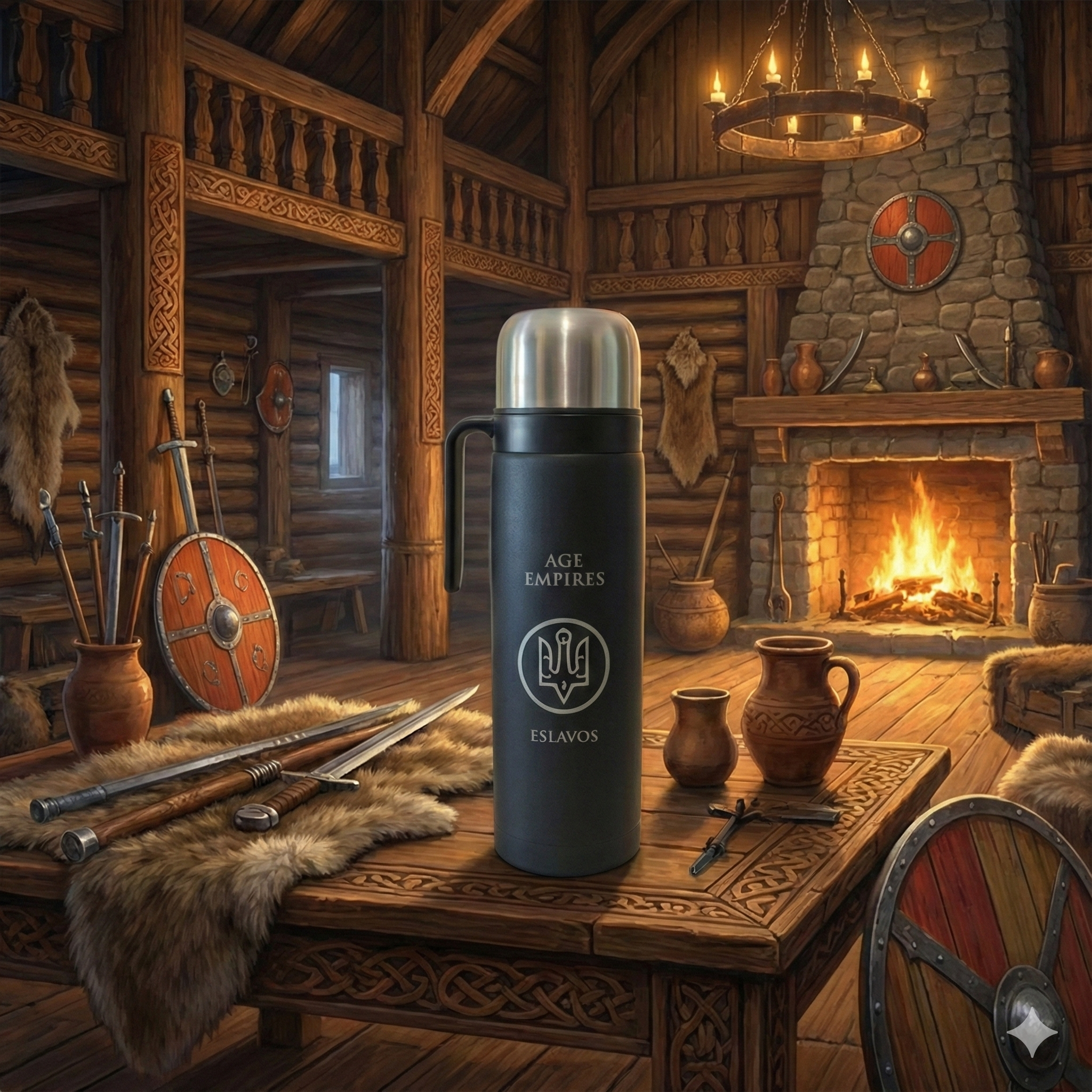 Thermo with1L capacity made of stainless steel engraved with the Slavs shield.
