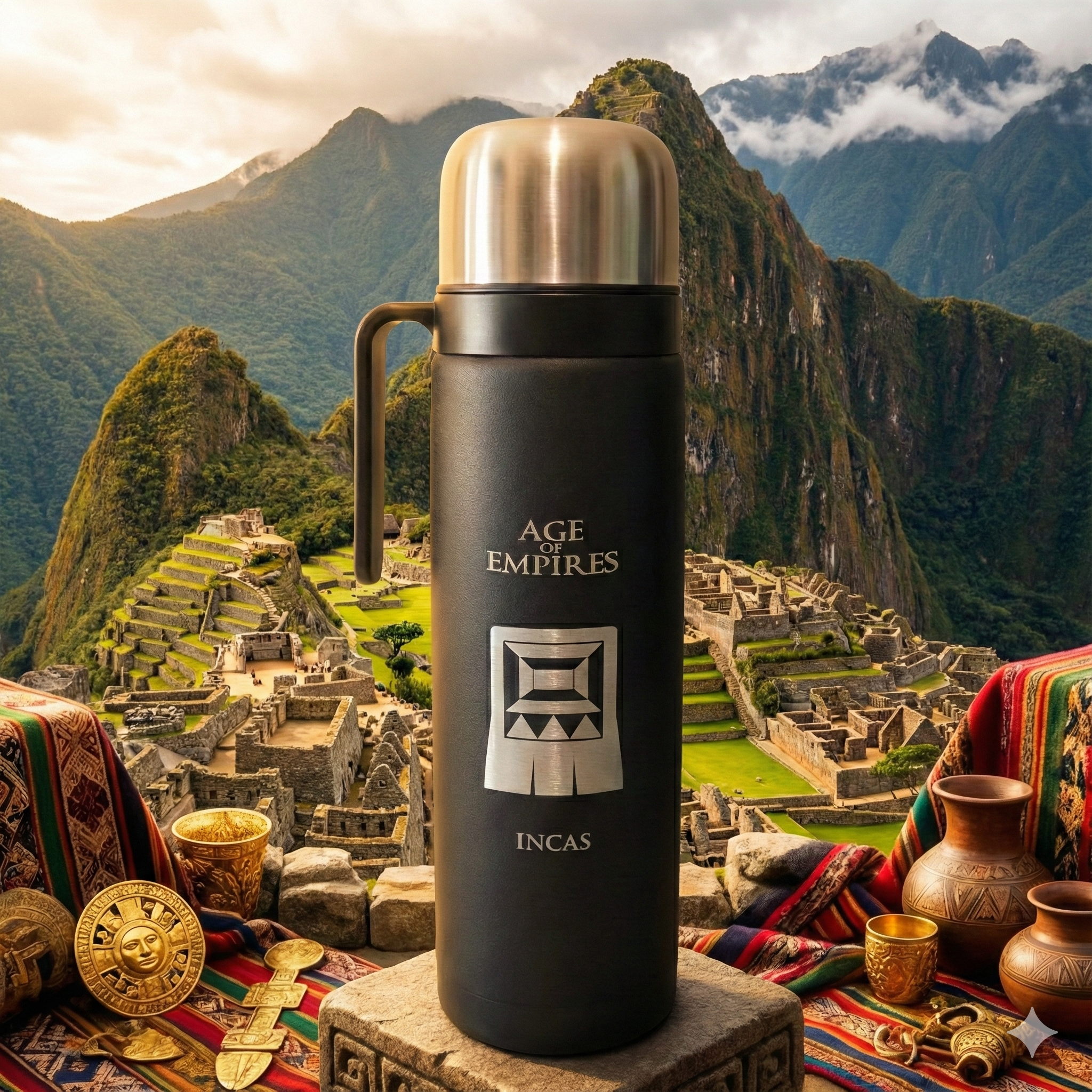 Termo de acero inoxidable de 1L grabado con el escudo de los Incas.