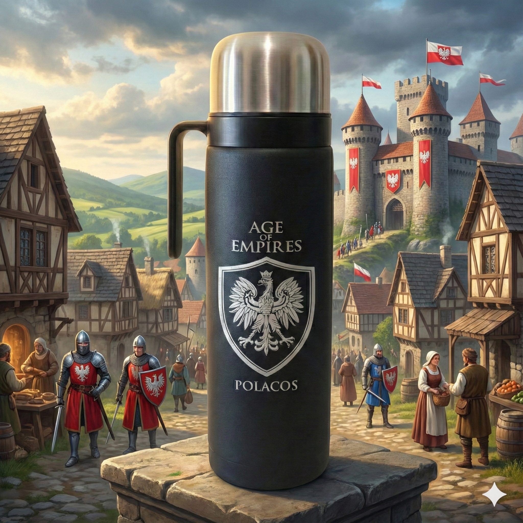 Termo de acero inoxidable de 1L grabado con el escudo de los Polacos.