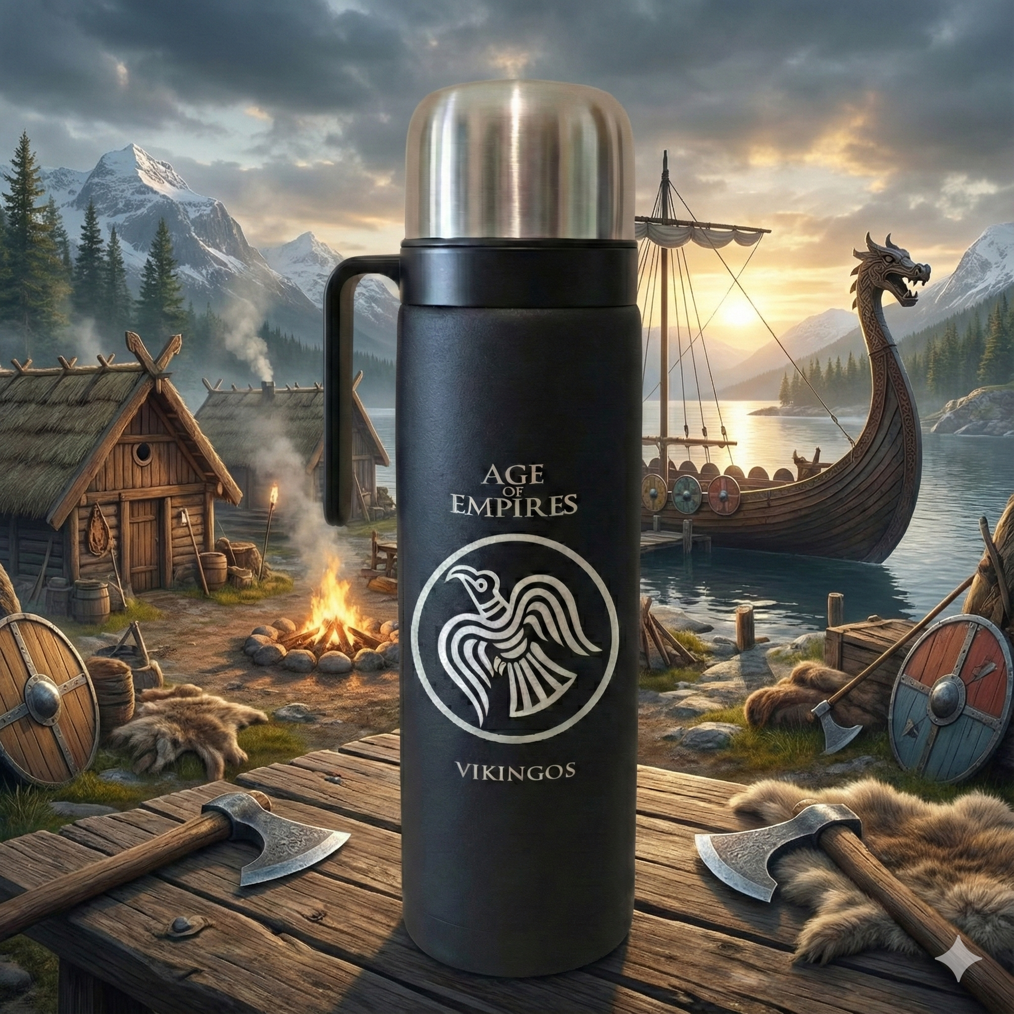 Termo de acero inoxidable de 1L grabado con el escudo de los Vikingos.