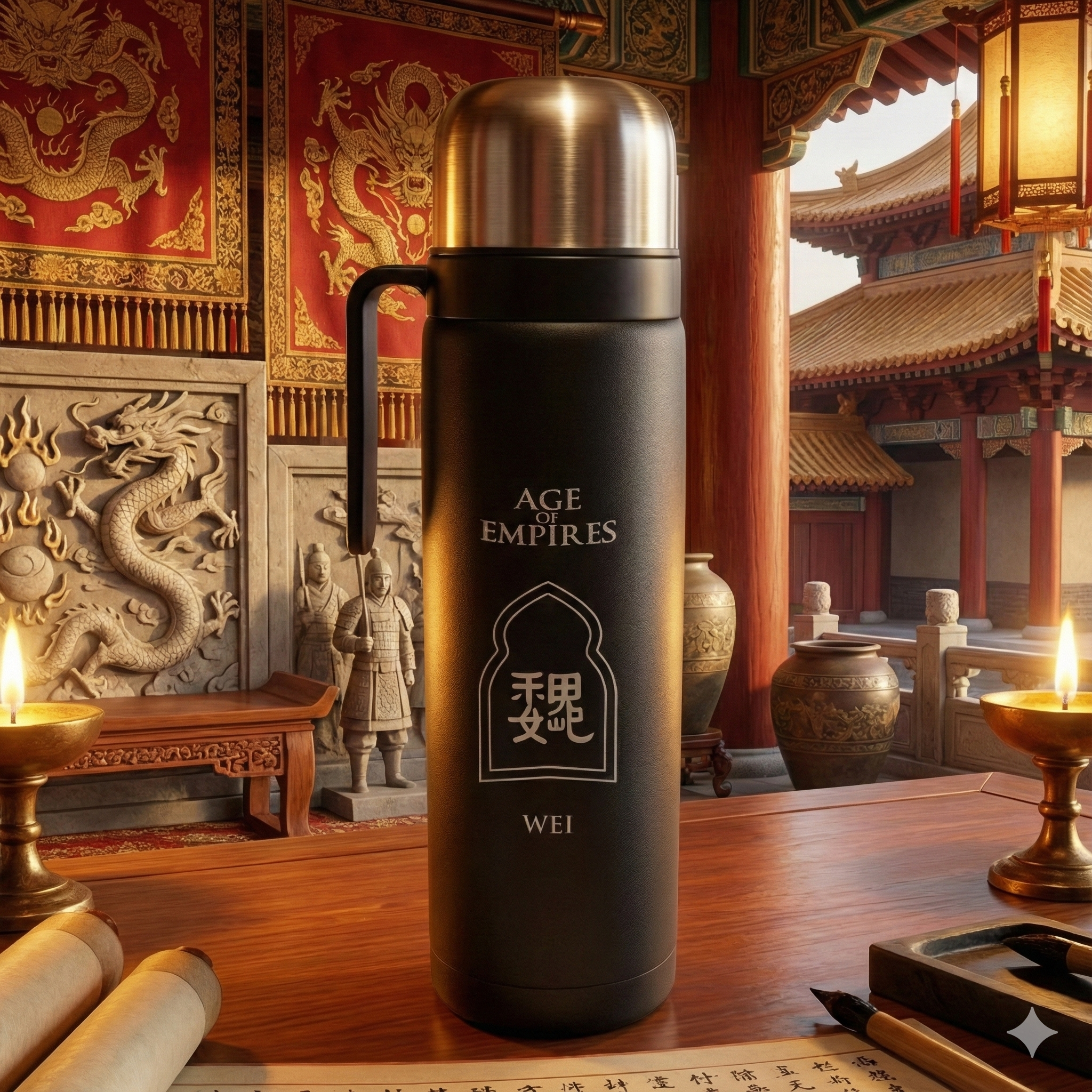 Termo de acero inoxidable de 1L grabado con el escudo de los Wei.